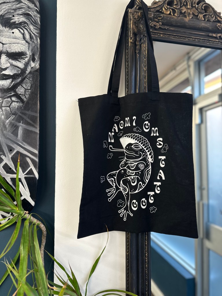 Smoking frog tote bag.